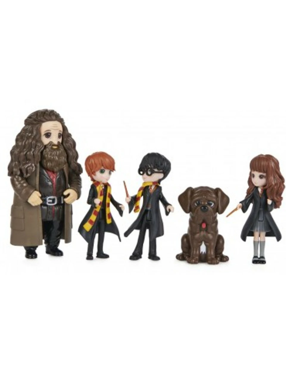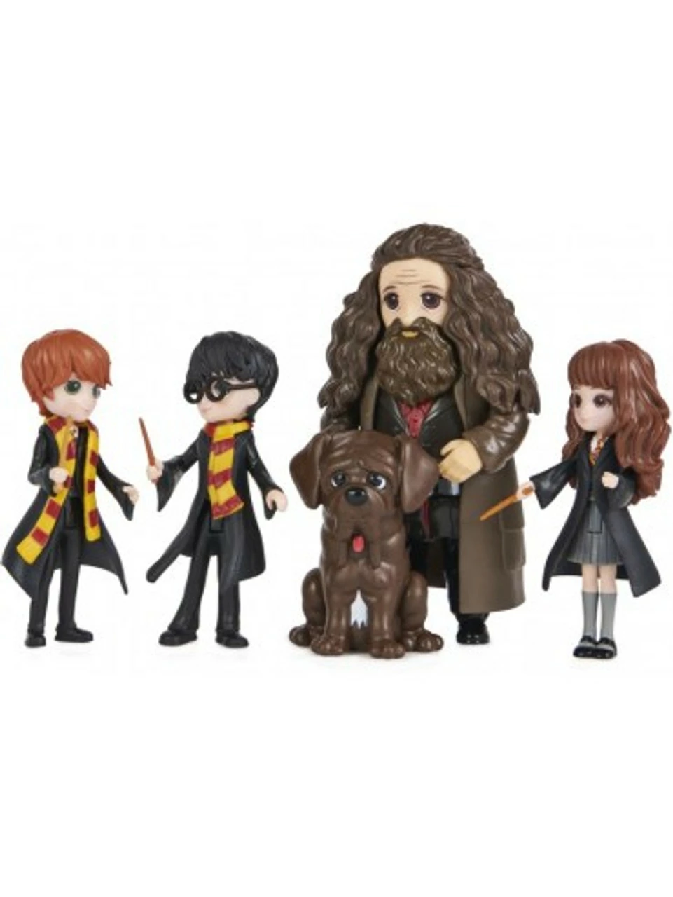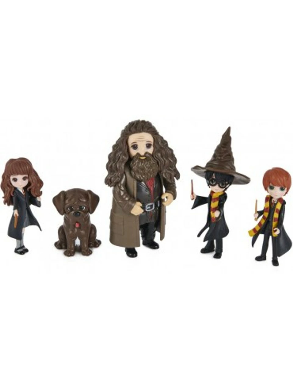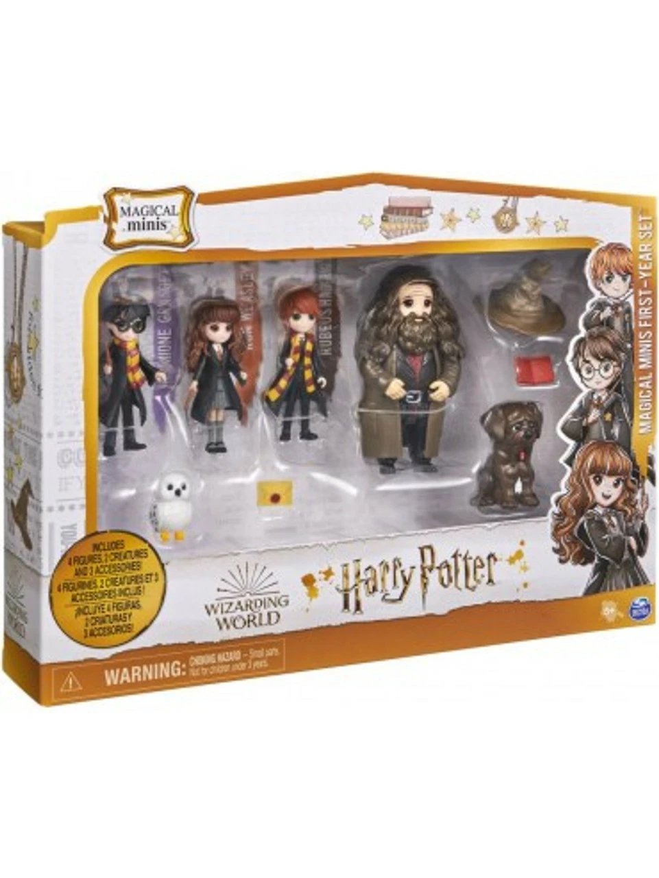 Recreate first-year at Hogwarts with your favourite Harry Potter characters and the Wizarding World Magical Minis First-Year Set! This set of Harry Potter dolls is a must-have for fans. It includes 3-inch Harry Potter, Hermione Granger, Ron Weasley and 4-inch Rubeus Hagrid dolls, plus three accessories, Hedwig, and Fang! Each doll is highly detailed, bringing the beloved Harry Potter characters to life. From the trio’s Hogwarts uniforms, to Hagrid’s coat and long hair, these Magical Minis Harry Potter collectibles are ready for endless spellbinding adventures! Place the Sorting Hat onto any of the figures and recreate the iconic Sorting Ceremony! With their true-to-character details, you can help Hedwig deliver important messages with the Hogwarts envelope and Fang can accompany your figures on every adventure. The Magical Minis First-Year Set is the perfect way to inspire your imagination through fun and exciting pretend play. For more ways to play, explore the halls of the Magical Minis Hogwarts Castle (sold separately) and collect all of the dolls, Friendship Sets and playsets (each sold separately) to build out your own Wizarding World! Magical Minis small dolls and the First-Year Set are great gifts for kids ages 5 and up. Relive first year at Hogwarts with the Wizarding World Magical Minis First-Year Set!