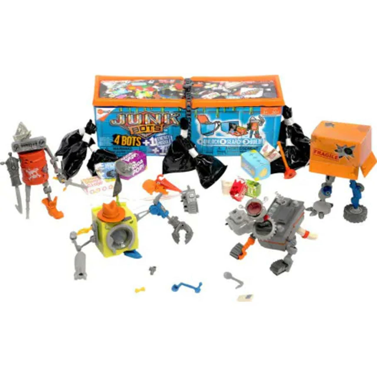 - Inside this special Dumpster pack are over 50 pieces that can be used to build four separate Junkbot characters, or mix and match pieces to customize totally new builds using the universal socket system! Animate your bots either with a motor or dynamic vibrations, and light-up energy core. The more you collect, the more you can create!