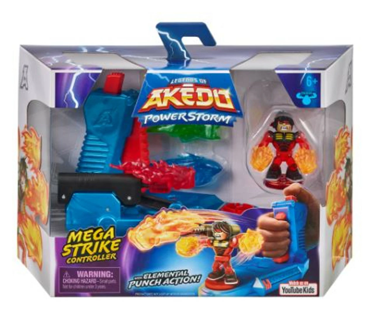Power Up your battle and unleash the power of the storm with the Legends of Akedo Powerstorm Mega Strike Controller with Elemental Punch Action! First, choose your Elemental power.