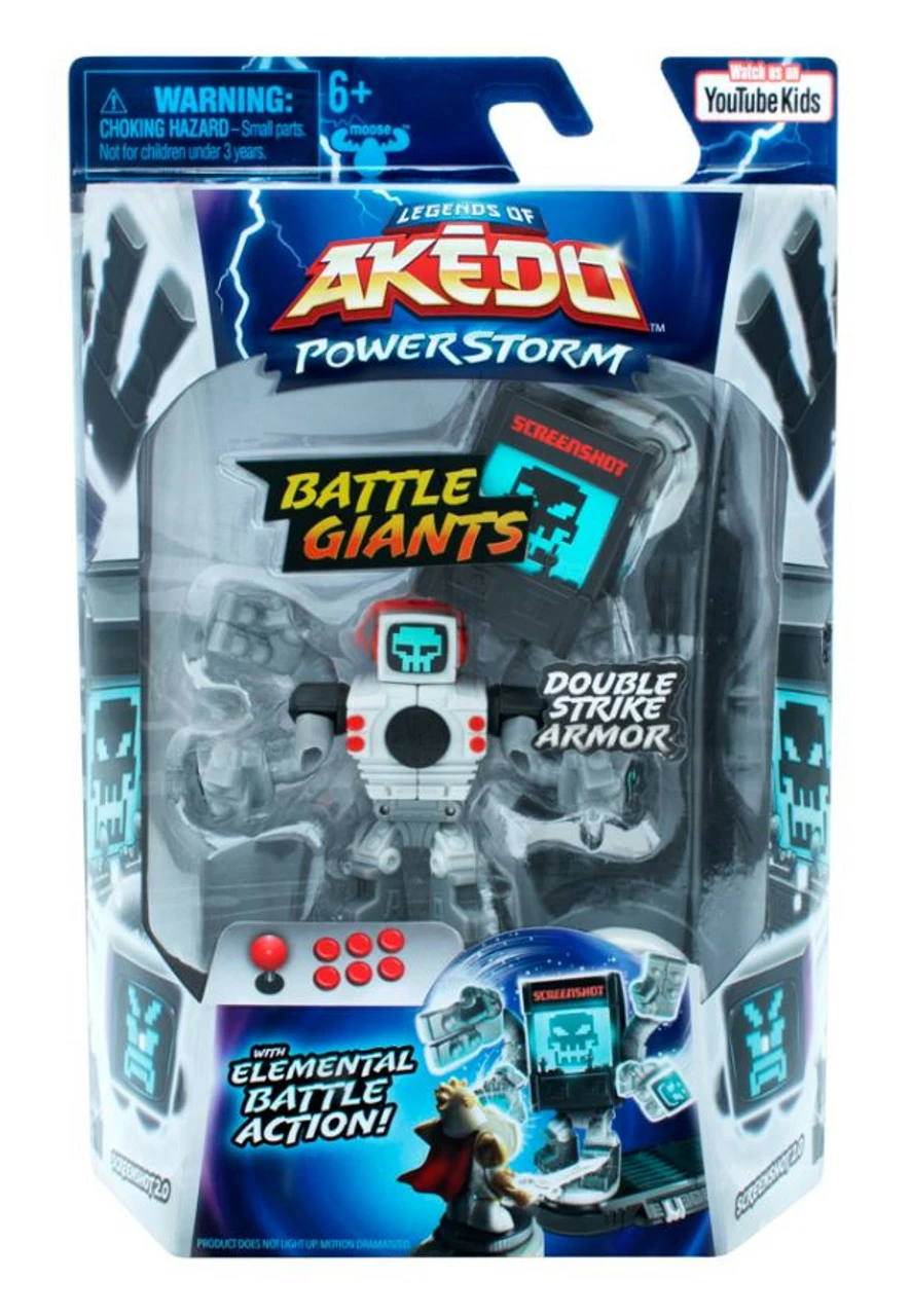 Hit them once to remove their armor, then hit them again for an epic Split Strike! Plus each Giant is power-boosted by one of the elements: Thoraxis is powered up by the element of Lightning. Screenshot 2.0 is powered up by Light. Both of these new Giant’s have a new Ultraslicer fighting style with “Ultraslicer Action”! Legends of Akedo Power Storm Giants Single Packs include one Akedo Giants Battling Warrior and one Button Bash Controller.