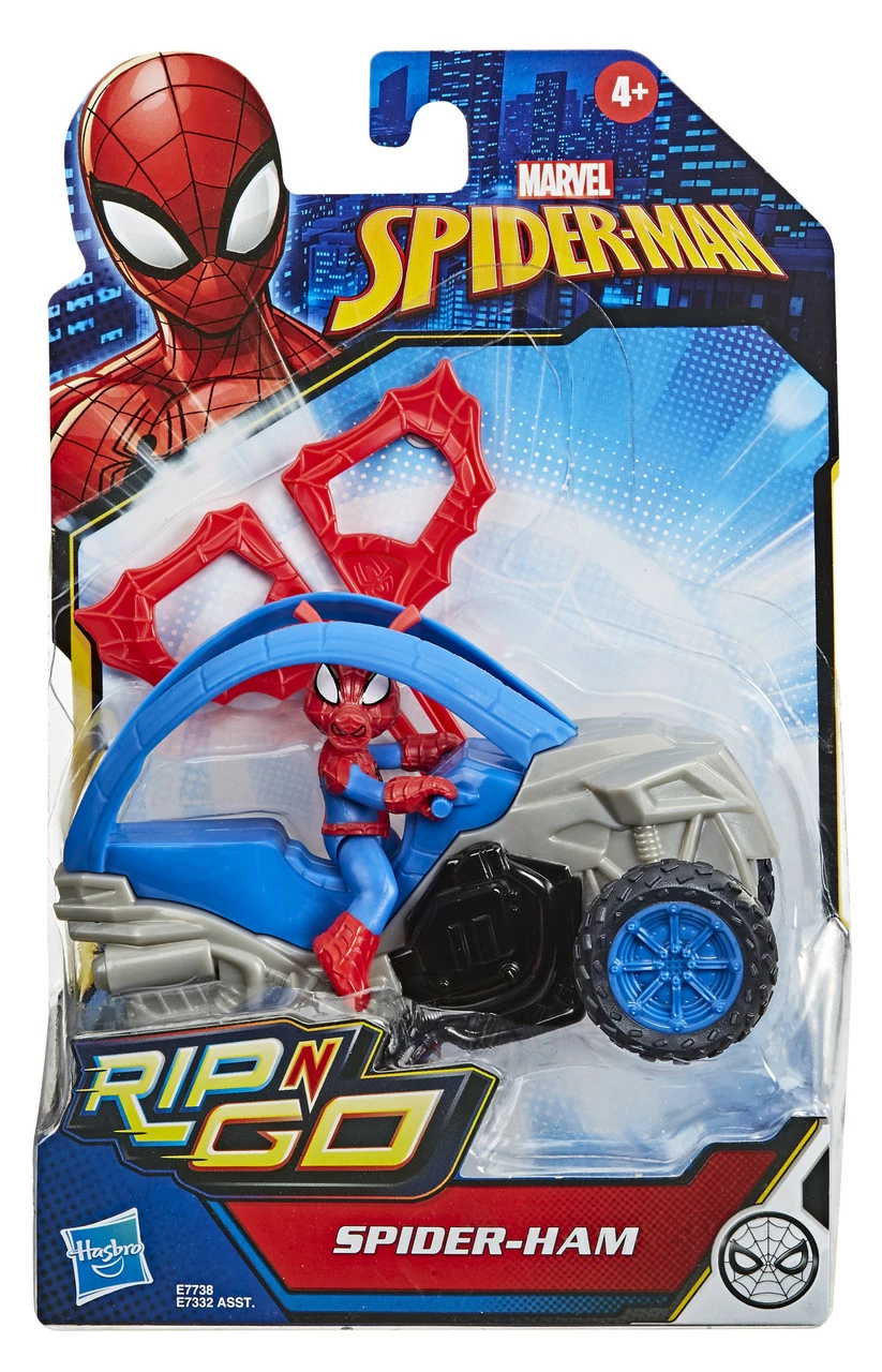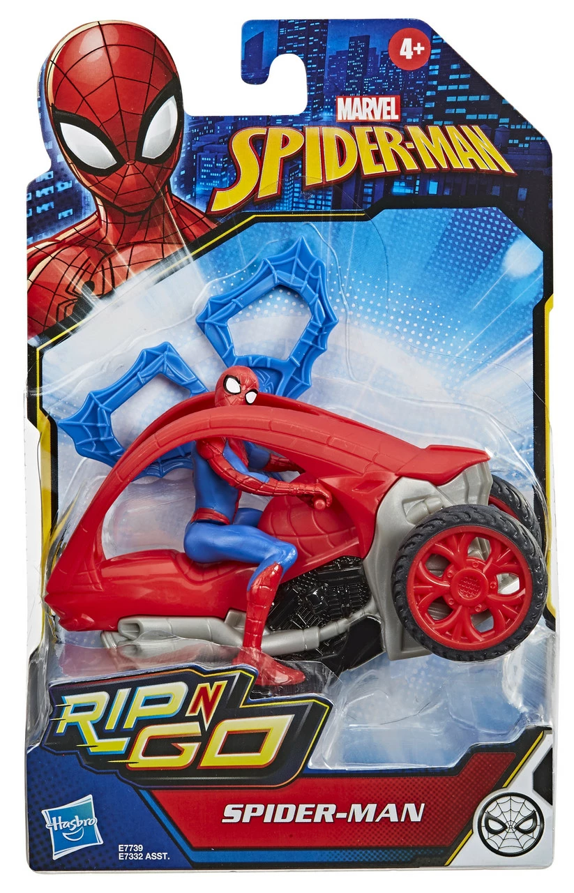 Imagine the web-slinging Super Hero zooming off to the next adventure with the 6-Inch-scale figure and cycle vehicle! Insert the split-cord and pull to make his Spider-Cycle roll into action. Kids can imagine dashing into action with this figure and vehicle, leaving villains in the dust! Create the ultimate good versus evil showdown with Marvel Spider-Man action figures! (Additional figures each sold separately. Subject to availability.)
