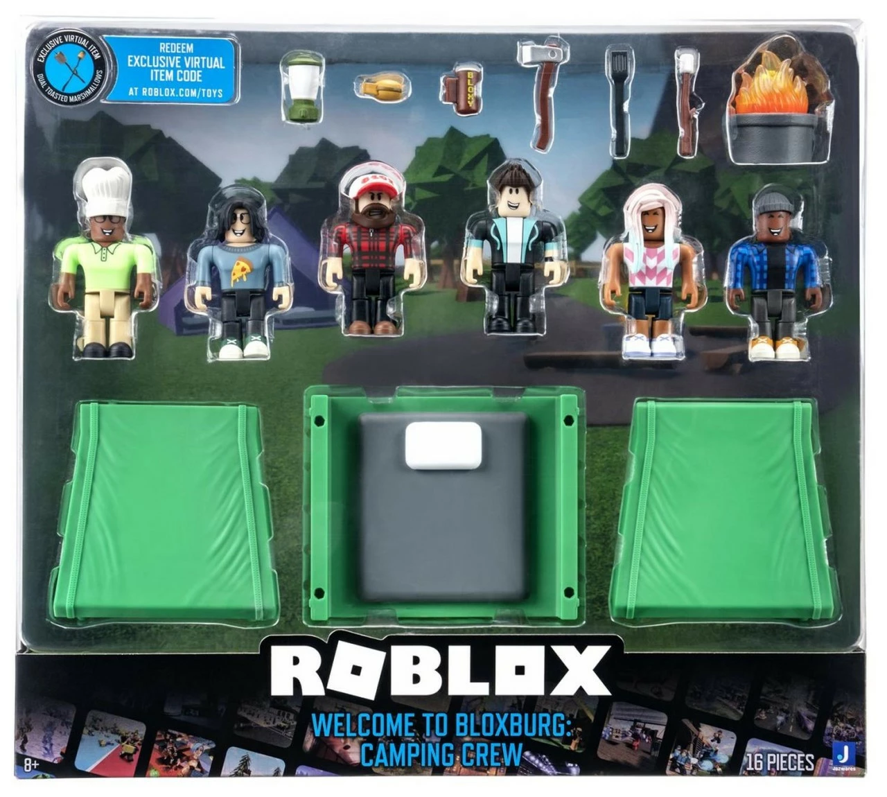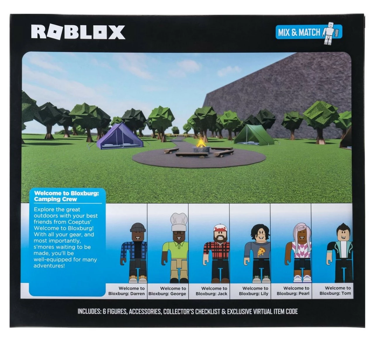 Includes 6 figures, accessories, collector’s checklist & exclusive virtual item code.