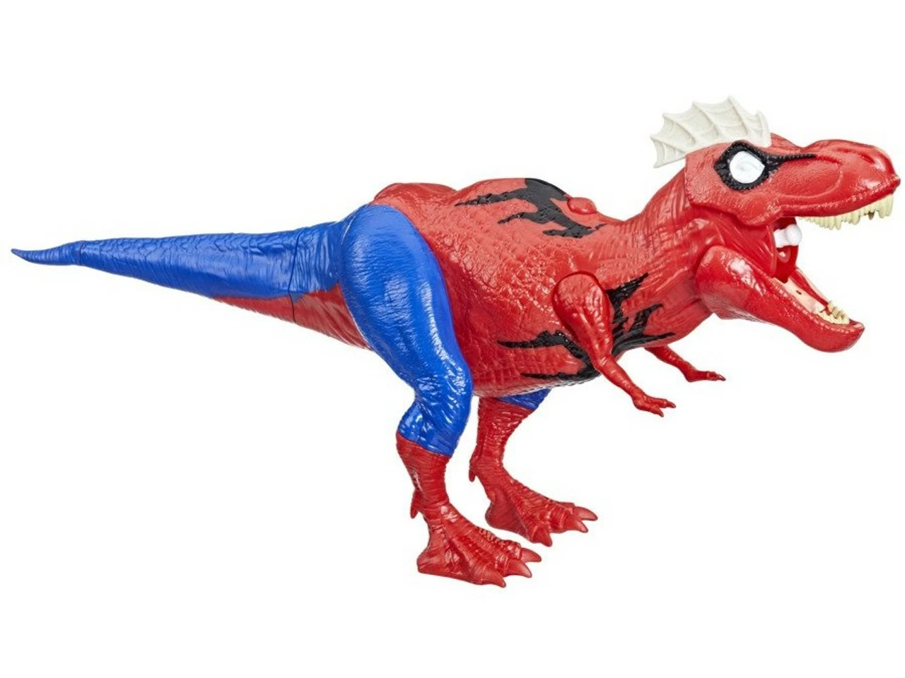 Spider-Rex stomps the bad guys into extinction! Kids can RAWRRR into action as they pretend to protect the city and scare away enemies as Web Chompin’ Spider-Rex. Let the bad guys know you’re coming for them with ten action sound effects kids can activate by pushing buttons on figure’s back. Ready Spider-Rex for battle with posable limbs and a classic Spider-Man inspired design. Kids can imagine fighting crime by activating Spider-Rex’s dino blast action feature to knock down the bad guys. The possibilities for play are endless! Kids ages 4 and up can create their own exciting and interactive play scene with other Marvel Spider-Man toys and figures! (Each sold separately. Subject to availability.) Hasbro and all related terms are trademarks of Hasbro.