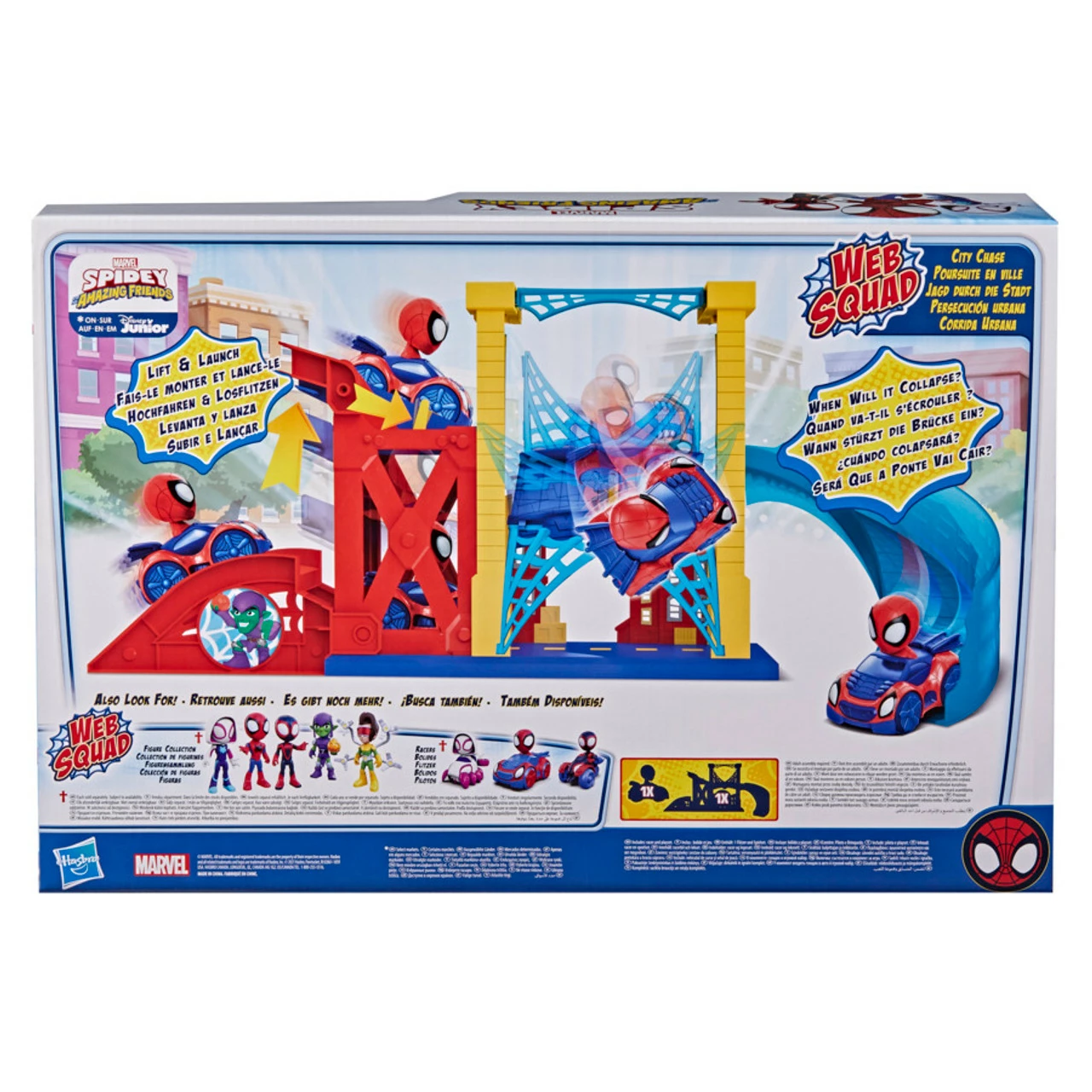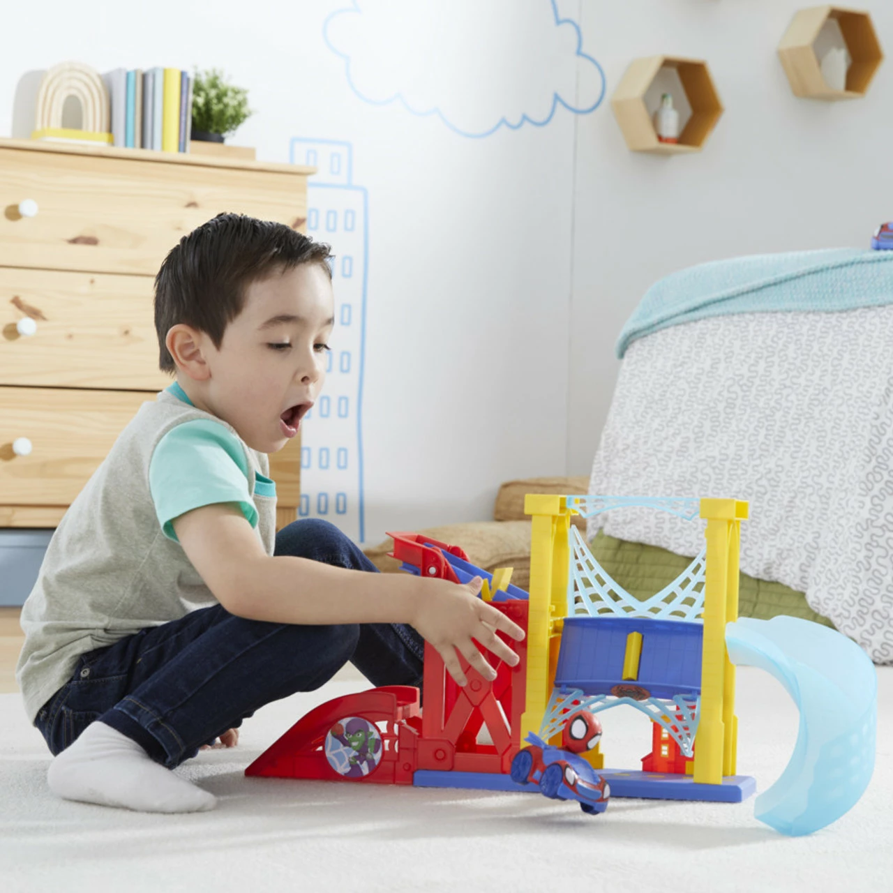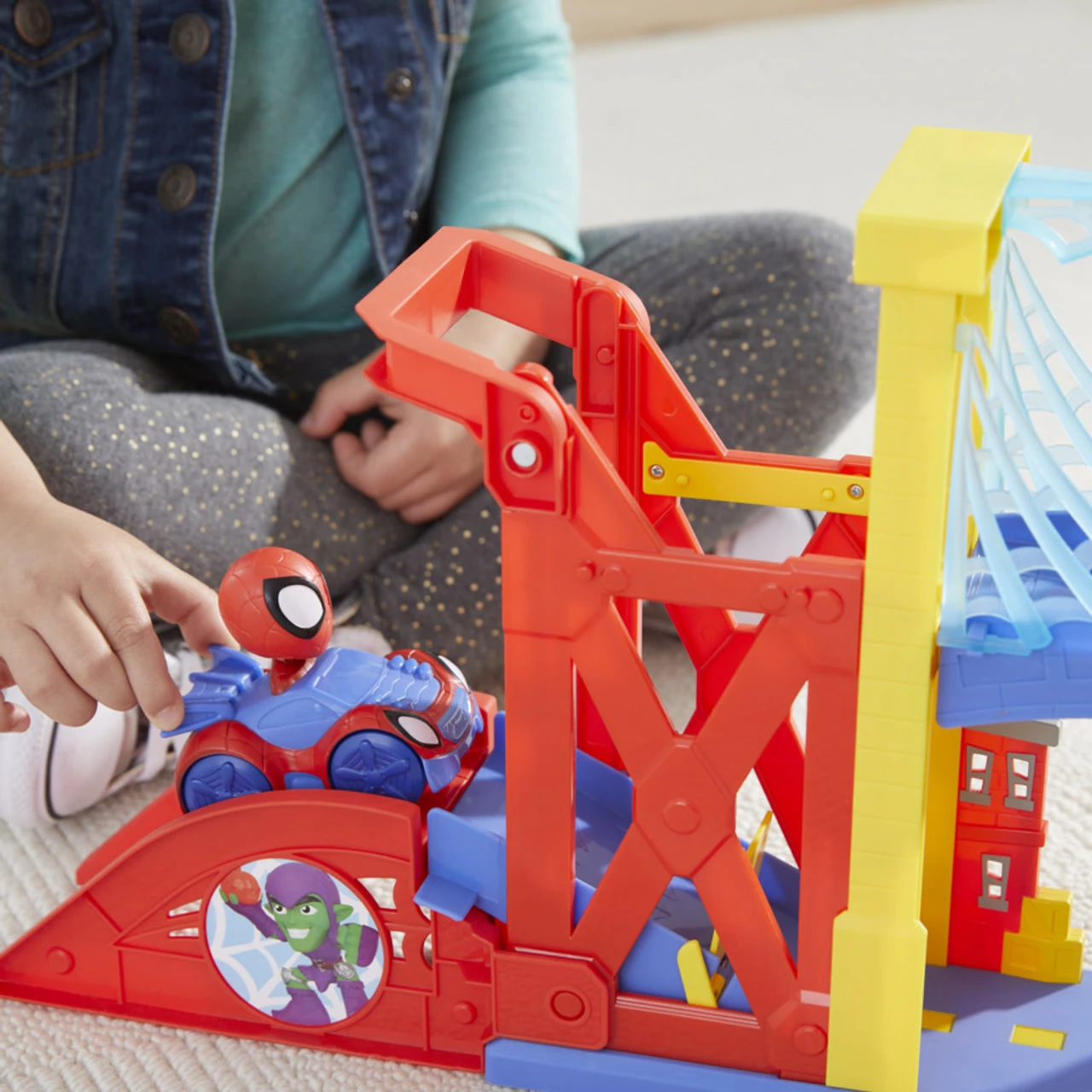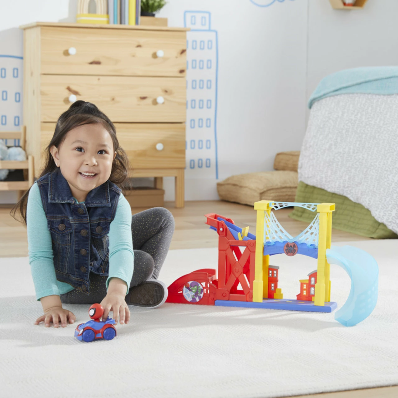 - action-packed spidey playset: celebrate spidey and his amazing friends with a playset that has a need for speed! zip vehicles across the bridge and down the slide for fast fun, or speed through the street below.