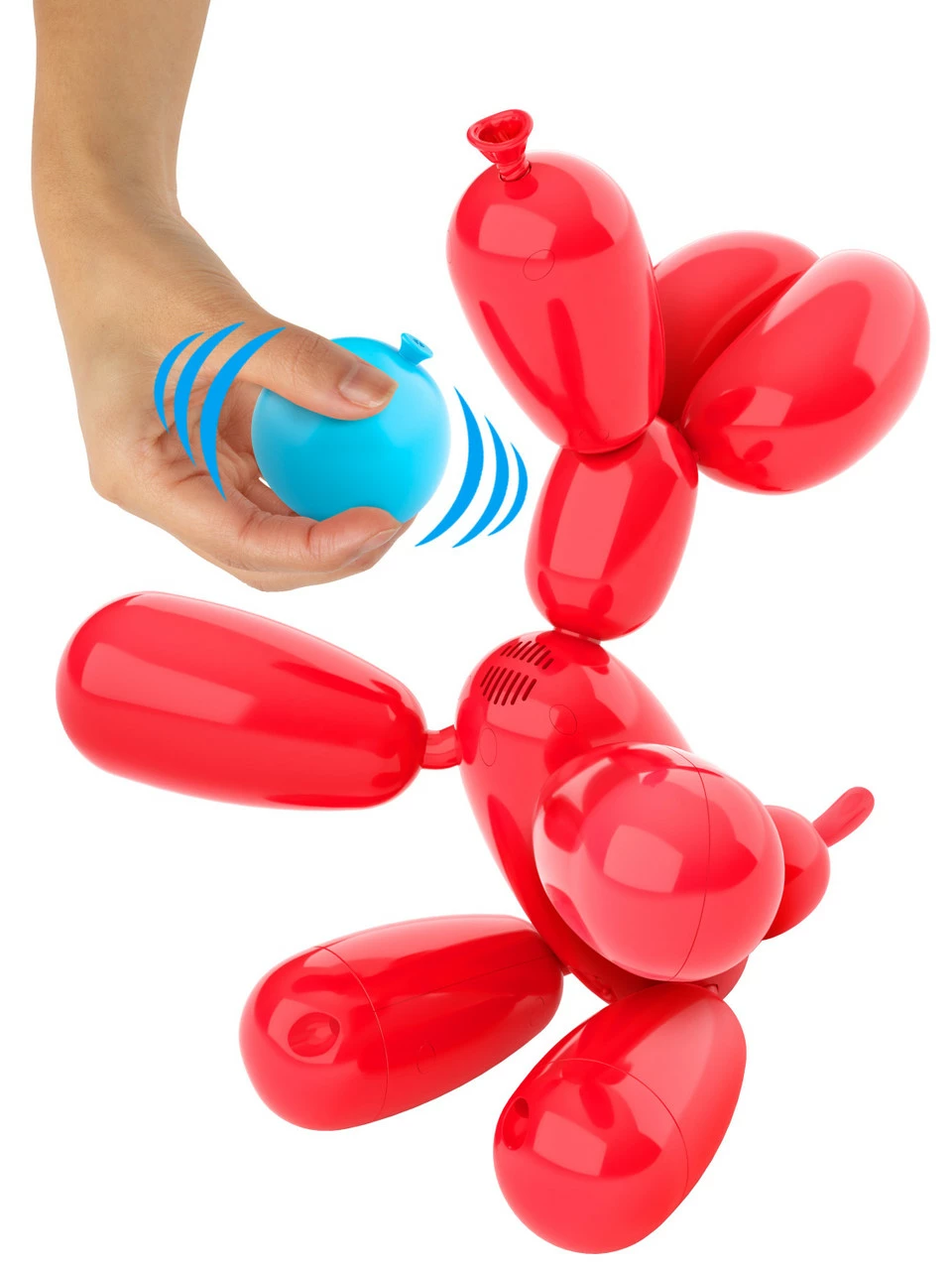 • Squeakee reacts to your voice. Tell him off to let him know when he’s been a naughty balloon dog.