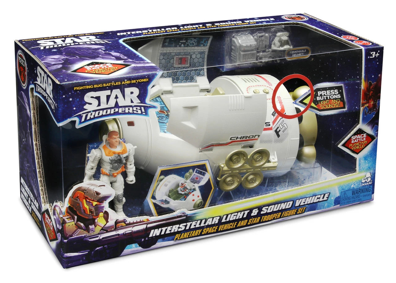 * Scale size detailed space rover and capsule with light & sound features. * Space capsule operated by 2 x AA batteries. Space rover operated by 3 x AA batteries (included). * Space capsule cockpit opens to hold a figure. * A 3-3/4″ poseable trooper figure and accessories included.