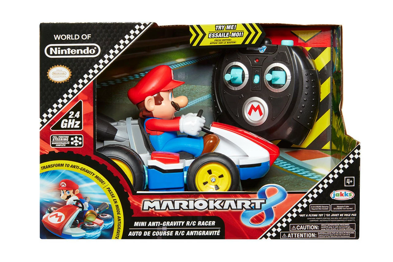 Ever wonder what would happen if your Mario Kart RC got struck by lightning? It would shrink down of course! The World of Nintendo is happy to bring you the new Mini RC Racer. Have Mario race in standard mode or flip into anti-gravity mode to perform drifts and tricks at the press of a button. Now with added performance you can even pop wheelies and do 360 spins! With up to a 100’ range this RC can go the distance!